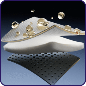 QUAQ pod ima otporne polimerne materijale koji pomažu u zadržavanju tečnosti, i koji smanjuju curenje tečnosti za 200%.